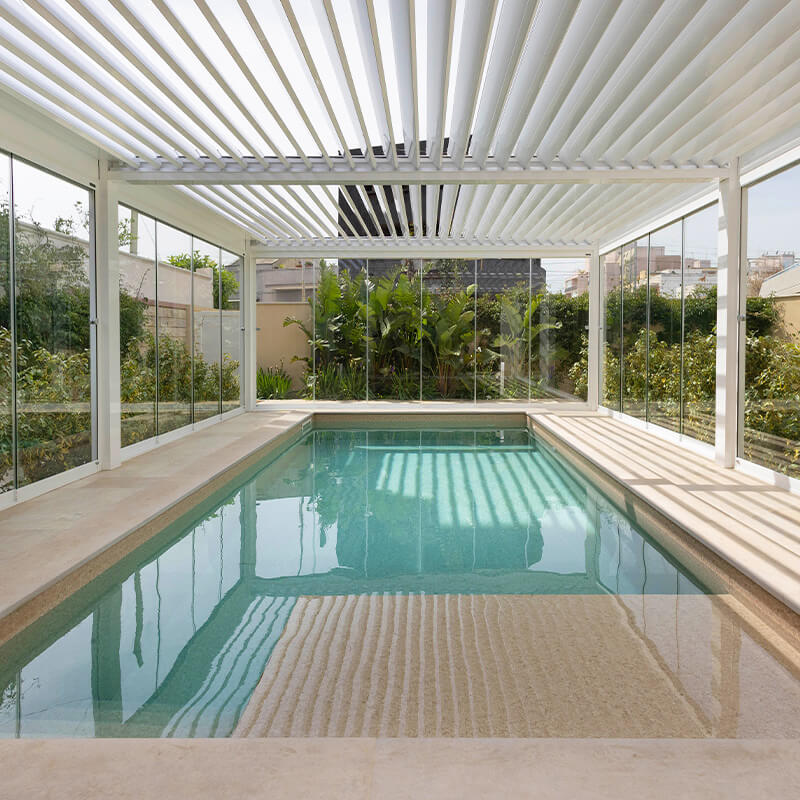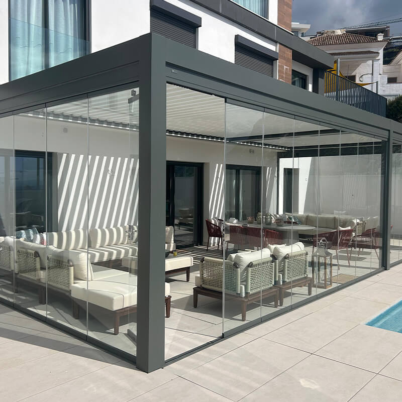 Soluciones en vidrio y automatización que combinan cerramientos panorámicos, control solar y sistemas inteligentes para mejorar el confort, la protección y la adaptación de los espacios al clima sin perder luz ni vistas.